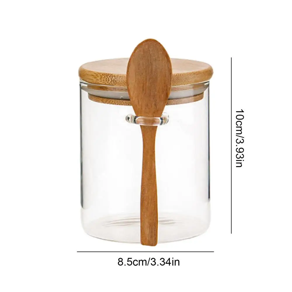 5.Easy to Take Anywhere: Whether you're at home or outdoors, this glass jar with bamboo spoon is the perfect companion. Take it with you wherever you need to store your favorite ingredients.